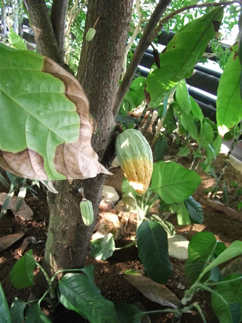 カカオの実だそうです。こんな風に幹から直でなるんですね~。びっくり。
